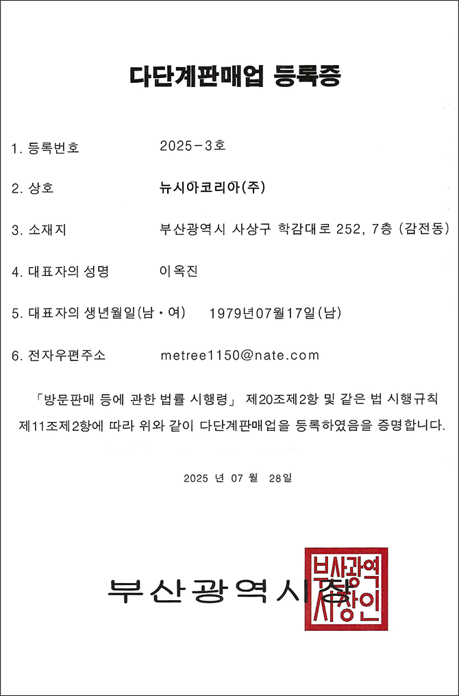 부산 사상구 학감대로 252 7층 뉴시아코리아㈜