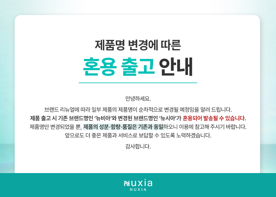 제품명 변경에 따른 혼용 출고 안내